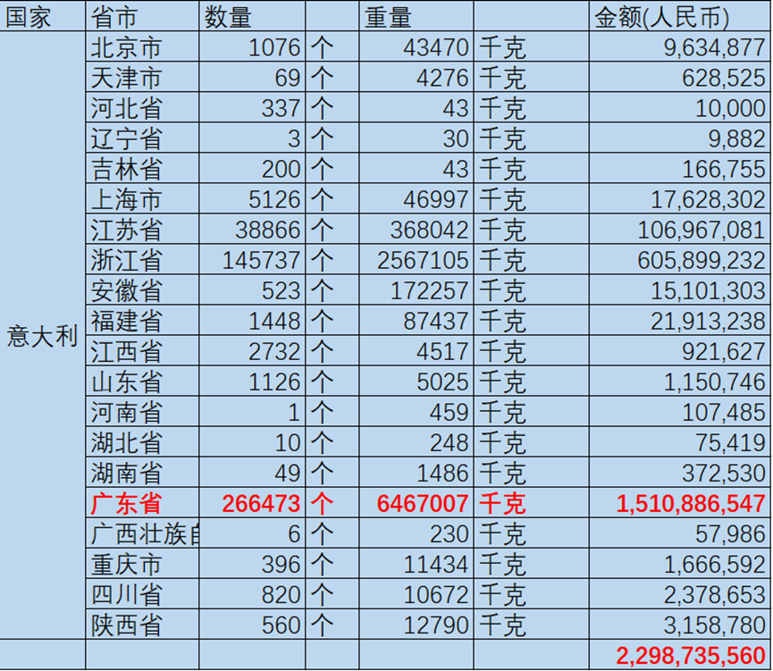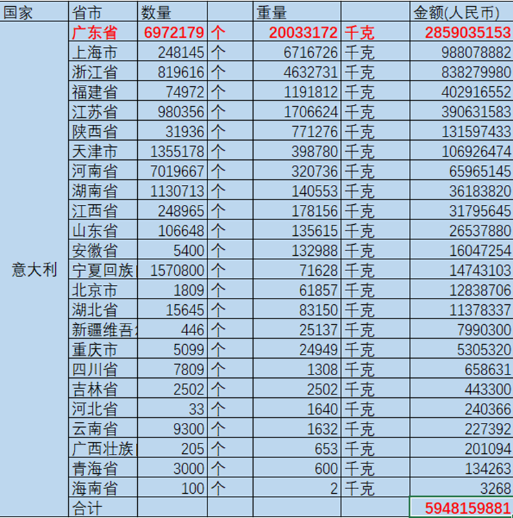 根据中国海关出口数据,2022年我国对意大利逆变器出口约为22.99亿元,其中广东省就有15.1亿元。2022年,我国对意大利锂电池出口为59.48亿元,其中广东省28.59亿元。