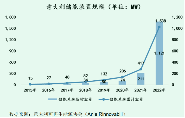 比如,宁德时代就在2022年获得了意大利的大储订单。另外,总部在浙江的南都电源,在2022年也曾与意大利国家电力公司签订总容量597.88MWh的储能订单。这些都是大储。