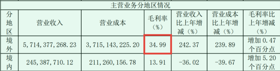 2022年,首航储能产品在海外部分的毛利率的确很高,达到47.28%(见表10)。而主业为户储的派能科技,2022年度其产品在境外市场的毛利率为34.99%(见表11)。虽然派能的毛利率看上去低,这是因为派能在统计时包括了储能电池部分,而首航新能的毛利率高,就是储能逆变器这块业务的毛利率,并不包括储能电池。