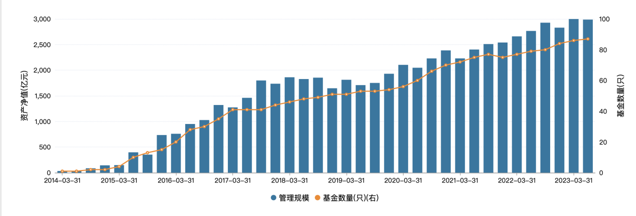 截至目前,兴业基金资产规模为3068.25亿元,较一季度增长了20多亿元,总规模在14家银行系公募里排名第8。