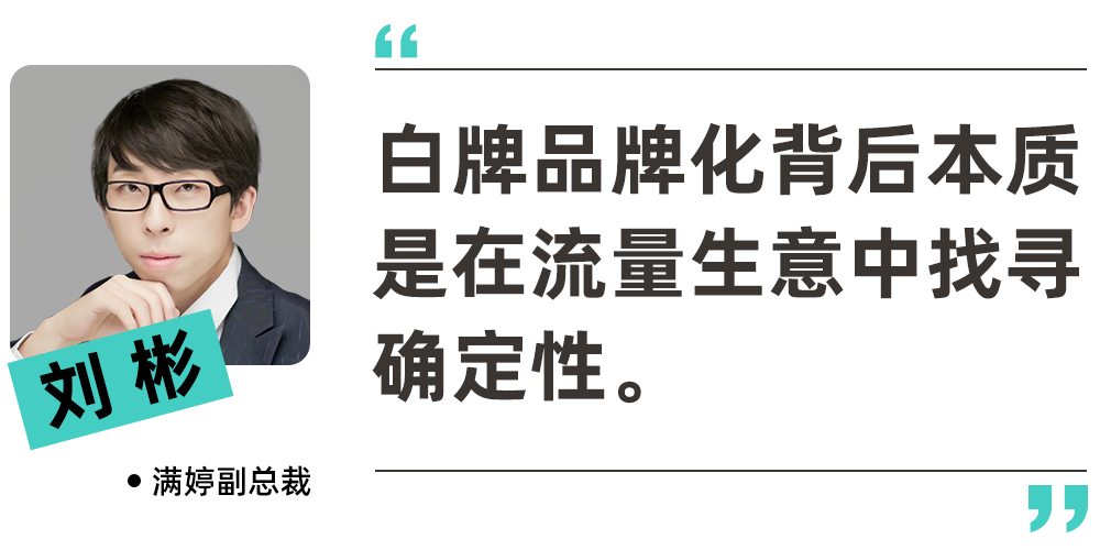 白牌品牌化在满婷副总裁刘彬看来,背后本质是在流量生意中找寻确定性,“希望有一款品能够持久销售,而不是永远迎合流量市场需求在换品”。