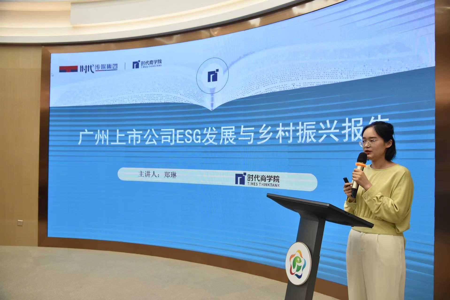 作为粤港澳大湾区的核心引擎,广州市是广东省制造业的聚集高地,也是广东实体经济的主战场之一。近年来,广州的上市公司数量一直稳步增加。截至2022年末,广州境内外上市公司218家,总市值近3万亿元,累计募资额超过5800亿元。在活动现场,时代商学院研究员郑琳发布了《广州上市公司ESG发展与乡村振兴报告》(下称《报告》)。《报告》从ESG信披变化趋势、ESG信披特征、乡村振兴与ESG双赢、广州ESG评级排行榜等方面进行了发布。