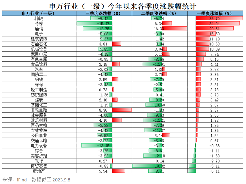 作为一季度最强的赛道,AI的表现可谓一骑绝尘,计算机、传媒、通信等板块涨幅遥遥领先,尽管二季度遭遇震荡,通信、传媒两个板块还是表现出较强的韧性,而“鹏华创新未来”也正是在这一时期选择了重仓AI。但从三季度的表现来看,AI整体表现并不理想。如果“鹏华创新未来”的重仓行业没能在三季度及时做出调整,恐怕将又一次买在高点上。