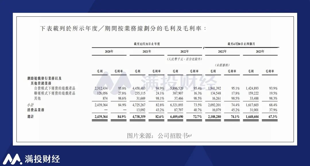 从近年来的数据来看,公司来自联运模式的网络游戏产品收入占比提升明显,从2020年的15.8%提升至2023年4月末的34.9%。而联运模式收入比重提升也导致公司整体的经营毛利润下降明显,并进一步影响了公司的经营利润。报告期内,公司录得毛利率分别为84.9%、82.6%、72.7%和67.3%。