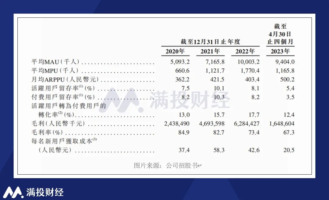 从题材上来看,中旭未来的游戏是中国游戏中的“守旧派”,其产品大多是仙侠、武侠世界观下的《传奇》类游戏。这类游戏的特点是受众往往年龄较大,流动性强,虽数量稀缺但具有较强的付费能力。结合招股书数据来看,截至2023年4月30日,公司游戏产品累计注册用户为4.18亿,经营游戏产品的平均MAU为940万人,平均每付费用户收入约为500元。