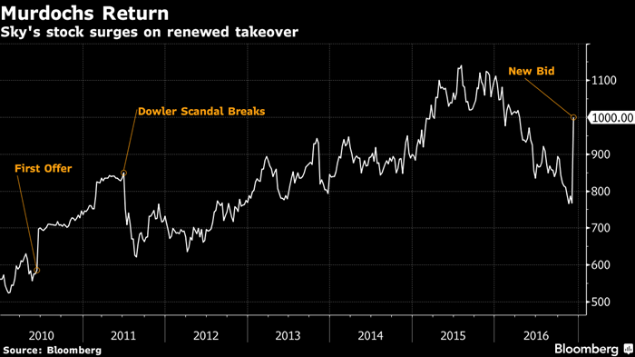 自2010年开始,默多克的新闻集团拆分成了两家公司,其中一家掌管在英国的报纸集团,而另一家则正在参与Sky收购竞标,努力将其纳入自己旗下的电影电视控股集团。默克尔旗下那家卷入电话窃听丑闻的报业早已关闭。英国在脱欧投票之后已产生了新一届政府,境内媒体固有格局也被打破。