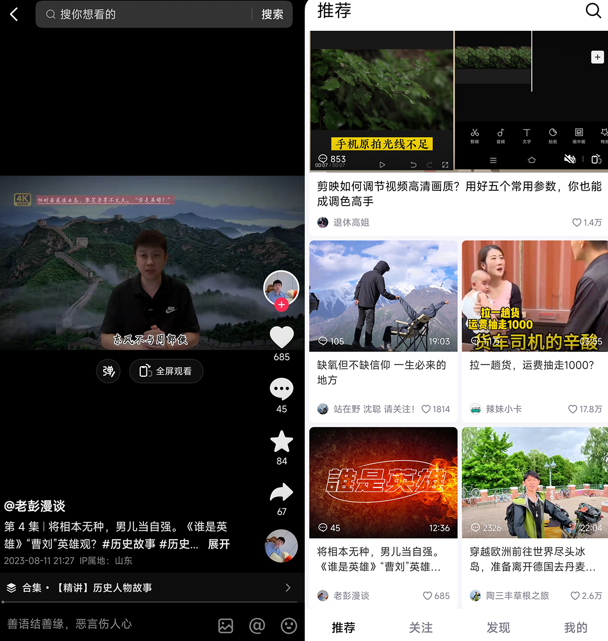 不过,这在很大程度上并非产品团队“冲KPI”,而是抖音内容生态变化的必然结果——因为在目前的抖音主站,长短视频内容的长期共存,已经成为不争的事实。