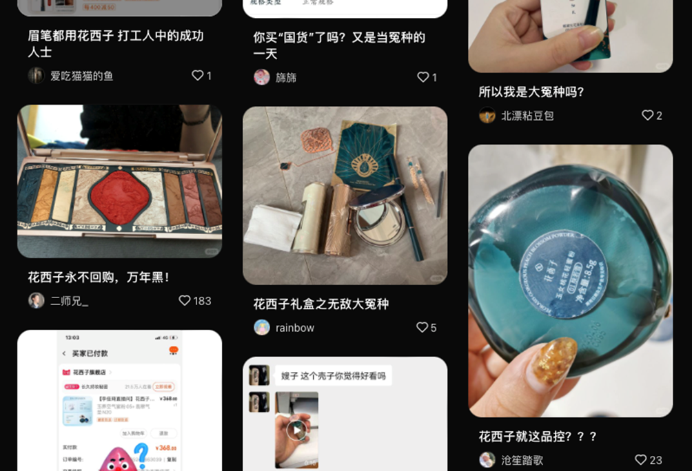 最经典的如《花西子到底有多会骗直男》《花西子求你别做产品了,做个人先!》《吃瓜吃到自己头上花西子礼盒X》《520到了花西子退退退退》《还有男人没被花西子骗过钱吗》……这些帖子都在批评花西子产品过高的溢价严重超出了其品牌该有的范围。