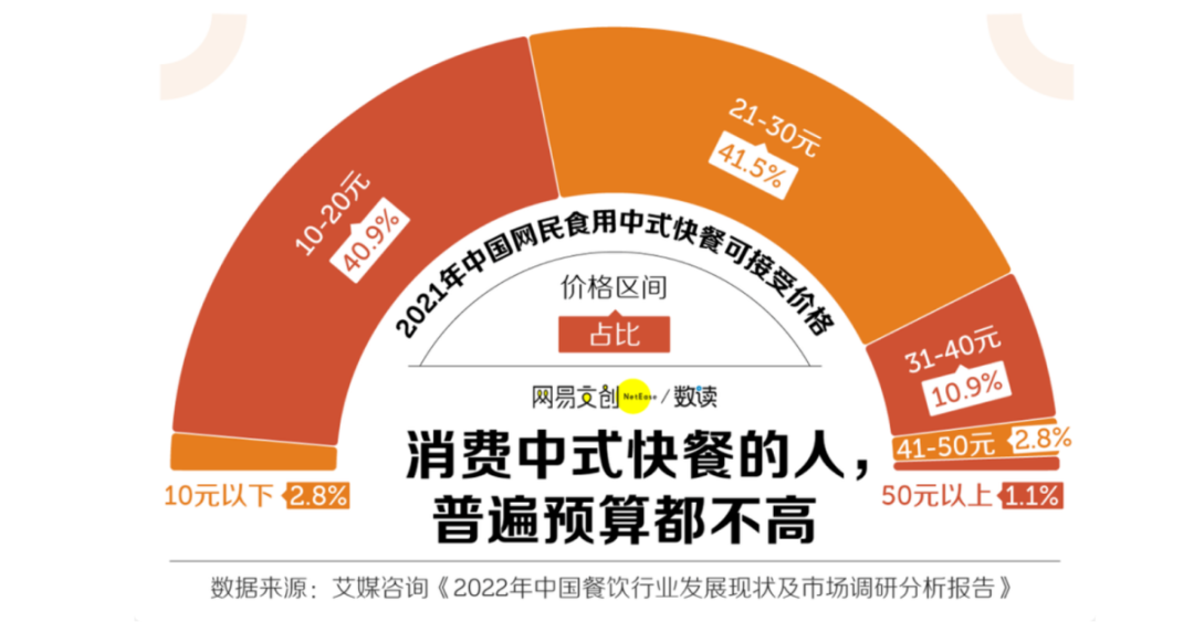 据艾媒咨询调查显示,中国人消费一顿中式餐饮,43.7%的人预算金额都在20元以下,85.2%的人可接受价格不超过30元。这让大多数餐饮品牌意识到消费者还是会选择低价、实惠的商品,让大部分人消费得起、持续复购才是延续品牌好感度的关键。