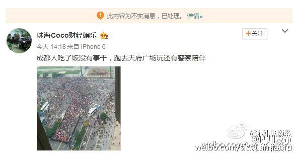 @四川发布称,四川省人民政府新闻办公室表示,对发布该不实信息内容的账号予以扣除信用积分10分,禁言15天,禁被关注15天的处罚。