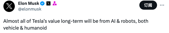 马斯克:特斯拉的长期价值将来自AI和机器人
