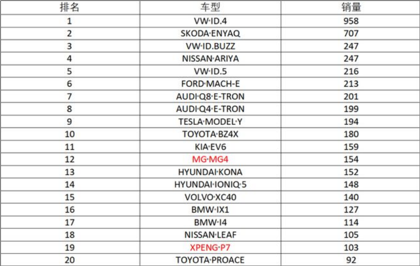 相比蔚来,小鹏的形势也不算“乐观”。7月份的挪威市场销量榜单上,小鹏P7首次挤进榜单前20,但销量仅有103辆。