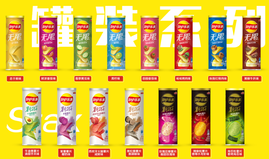从1965年成为百事旗下品牌的同时推出烧烤口味薯片,乐事风味此后“一发不可收拾”,根据Insider 2020年的报道,乐事薯片在全球范围内已经推出超过200种口味。从经典原味到黄瓜味、岩烧海苔味、青柠味、墨西哥鸡汁番茄味……仅常规款口味就多达十几种。此外还有应时应节推出的季节限定款和各种联名款。