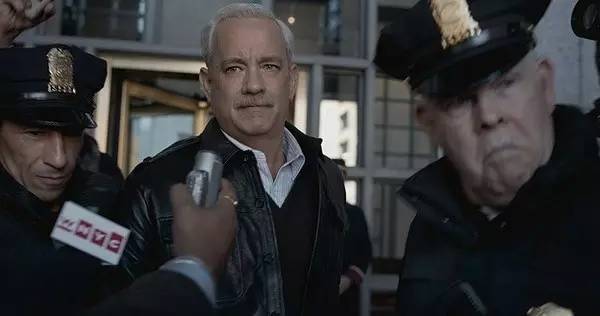 影片中的萨利机长时刻处于审查委员会和媒体的双重夹击之下,审查委员会怀疑萨利机长将飞机迫降在河上,不仅非常错误,而且十分危险,因为他们认为他有足够的时间飞到拉瓜迪亚机场;而媒体记者则对萨利机长围追堵截,关于他是英雄还是决策错误的声音此起彼伏。我们看到饰演机长的汤姆·汉克斯时刻眉头紧锁,一副严肃的面庞,即使与妻子打电话也是处于语无伦次、断片的状态中,在精神高度紧张的时候还会梦见或幻想出媒体对他的质疑,飞机撞击大楼的场景。