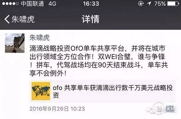 朱啸虎“共享单车90天结束战斗”的观点,他估计是说:90天内,他所投资的ofo单车成为这个行业的终极老大,占据80%左右的市场份额,像滴滴一样,其他任何共享单车企业都难以撼动ofo的地位。