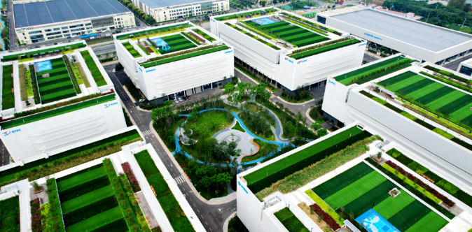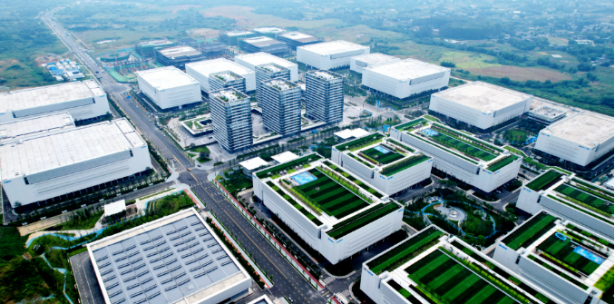 目前完成建设的标段,占地面积为220亩,总建筑面积23.8万平方米。包含了厂房和综合楼两个区域,其中厂房区域为2栋钢结构厂房和1栋辅助用房,综合楼区域为5栋16层员工宿舍及1栋商业体。