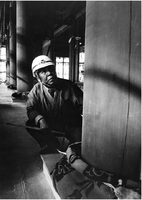明治时期以来,木匠在日本的地位开始下降。明治维新引进了西学,建筑学和建筑本身割裂开来,工匠和学者也割裂开来,于是从来没有摸过木头的人开始设计寺庙,主持寺庙的建设。然而有经验的木匠都知道,在实际施工的过程中,严格复现图纸是一种教条。因为木头是有生命的,每一根的个性都不一样,不可能按照图纸乖乖听话,更重要的是,木头的生命在寺庙建成后还在一直延续,如果严格按照规定的尺寸建造,把木头的生命框定在计量数字里,建筑是不能很好地存活的。西冈就曾说,“我在用扁柏建造佛塔的时候,脑子里就会想到它三百年以后的样子,三百年以后,它也许会跟设计图纸一样。”