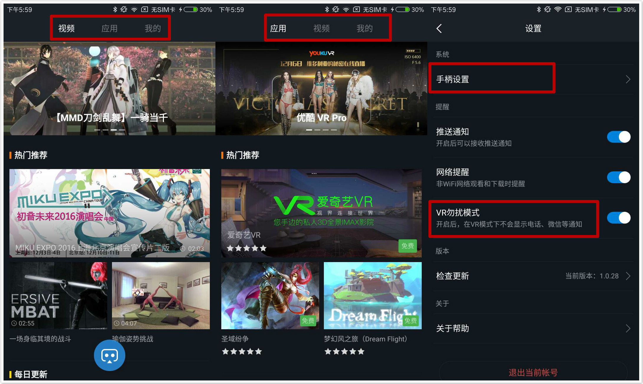 体验:比普通盒子好,但不足之处依然明显为了配合这款新硬件,小米还特意推出了正式版的小米 VR app,与玩具版 app 相比,增加了连接手柄功能外,内容也有所区别。例如说,正式版的 app 将应用放在首页的位置,玩具版则将视频置前,前者更强调 VR 的可玩性。正式版的小米 VR 游戏体验作为重点,应用内也将游戏做了细分,有策略类、休闲类、冒险类、射击类等,内容还是够玩的,而且小米 VR 已经对上架内容做了筛选,不会出现想玩却玩不了的情况。但由于目前还没有特别优秀的 VR 游戏内容出现,多数游戏都不耐玩,缺乏爆款,小米 VR 在这种大环境下也不得不面对这种困境:即使想强调产品的可玩性,但却玩不起来。