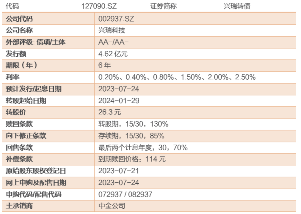 兴瑞转债的发行公司是兴瑞科技,公司是国内重要的精密零组件制造及研发企业,产品涵盖电子连接器、结构件、镶嵌注塑件等。公司成立于2001年12月27日,于2018年9月26日在深交所主板上市。