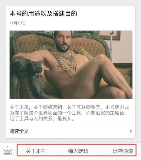 再给大家发一张熟悉的图,这个是洒家自己公众号。不管是俺个人品牌下的账号,还是我自己做业务的号,俺都会严格会遵照以下架构(如果诸位看到目前有别人这么搞的,肯定是抄洒家的,因为这个套路是俺试错多次锤炼出来的。)