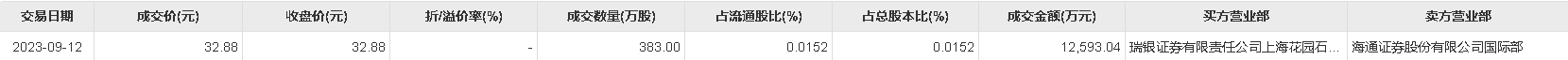 招商银行今日大宗交易平价成交383万股,成交额1.26亿元