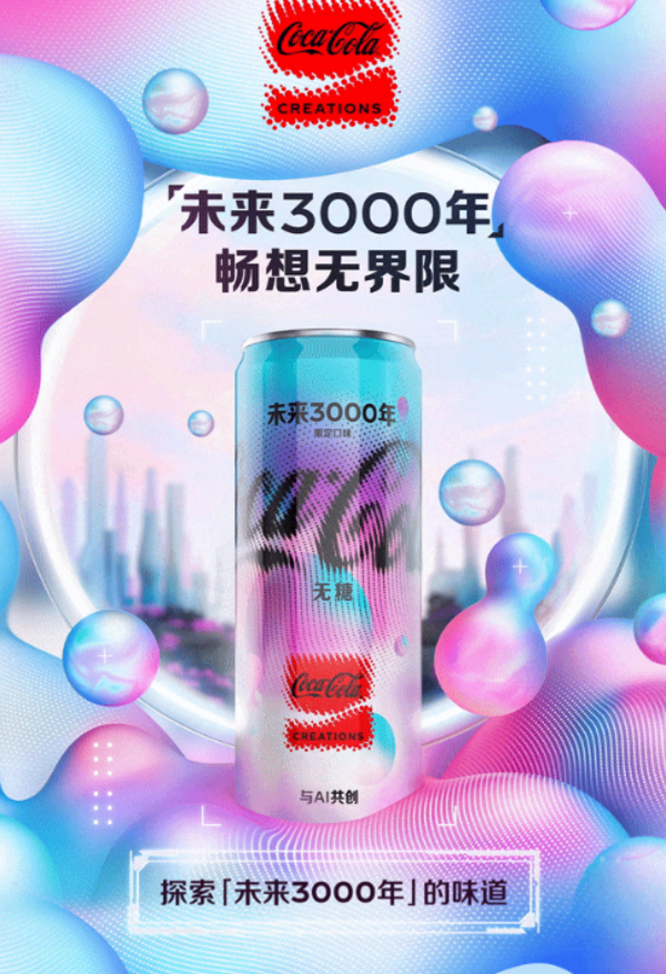 9月12日,可口可乐全球创意平台“乐创无界”推出全新限定产品,首款联合人工智能(AI)打造的无糖可口可乐“未来3000年”,这也是可口可乐“乐创无界”在中国市场继“星河漫步”、“律动方块”、“魂·境”和“英雄登场”后推出的第五款限定产品。