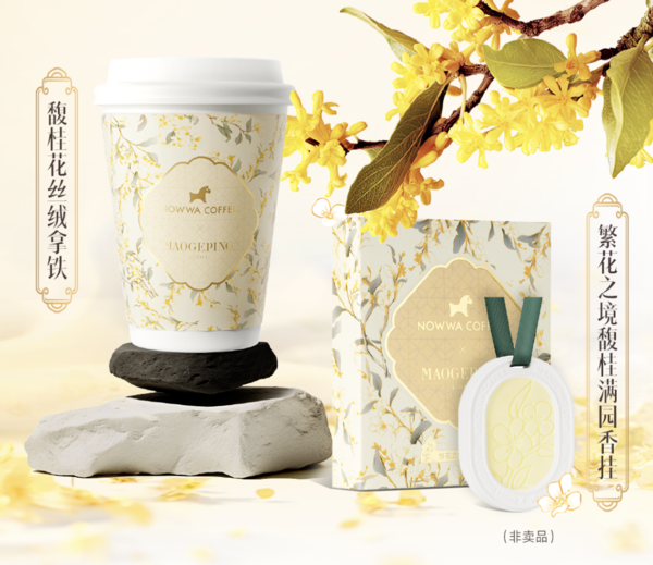 近日,挪瓦咖啡x毛戈平·光韵推出馥桂花丝绒拿铁,由秋季最高分产品首席研发19+次精心调配,匠心打造。含有1:1复刻 [满觉陇] 的馥郁桂花香气,融合优质蜂蜜,清甜自然。再搭配独创丝绒厚乳,甄选瑞士优质奶源,创造奶香醇厚的丝滑口感。