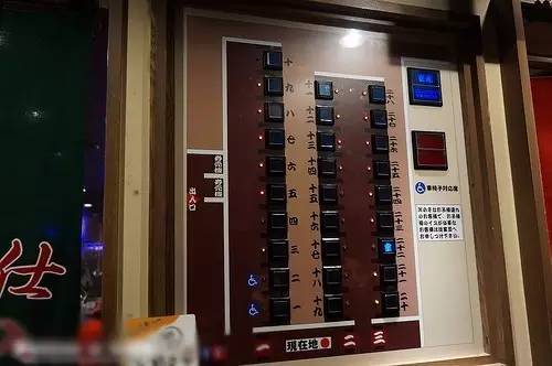 里面还有一台“空”位显示器,如果哪一个坐位“空”下来,那么机器上就会显示一个“空”字,之后等待的顾客就会根据机器的提示,找到空下来的坐位,坐下即可,而不需要像国内餐厅一样,专门有人叫号排队。