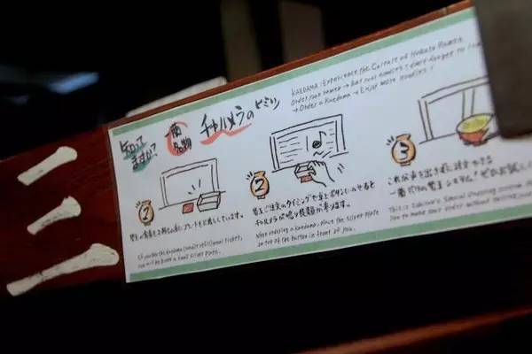 一兰拉面的就餐环境很特别,像一个大学校园的自习室,左右之间有一个挡板隔开,坐下来面对的是一块挡板和帘子,形成了一个独立的“自闭”就餐环境。