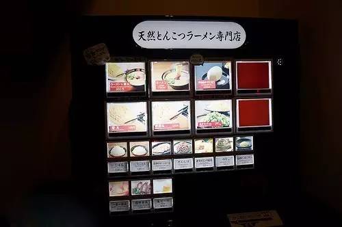 进入一兰拉面馆,你会看到一台点菜机器,在上面选好自己要吃的拉面和配菜,然后将钱投入机器取票即可。