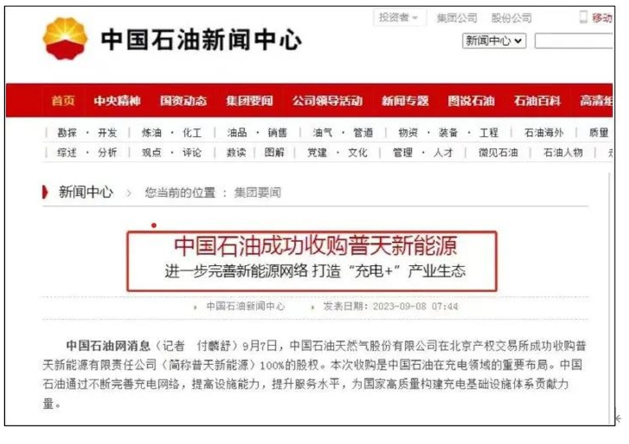 华夏能源网获悉,9月7日,中国石油正式收购普天新能源100%股权,此次股权转让的挂牌底价近15亿元。