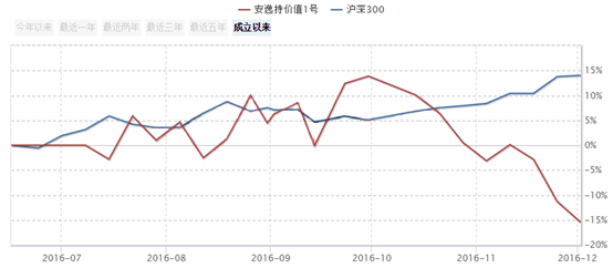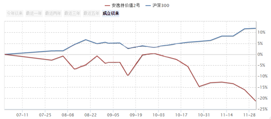 “安逸持价值系列”的其它产品表现也不容乐观。安逸持价值1号、安逸持价值2号累计净值分别跌去25.8%和21.7%。
