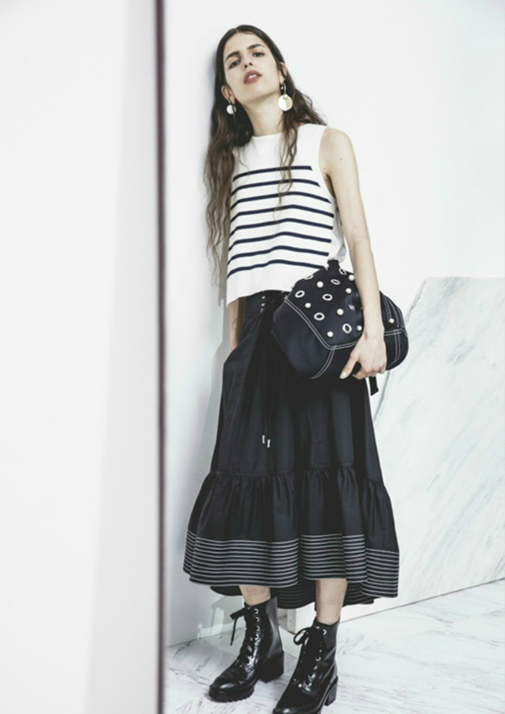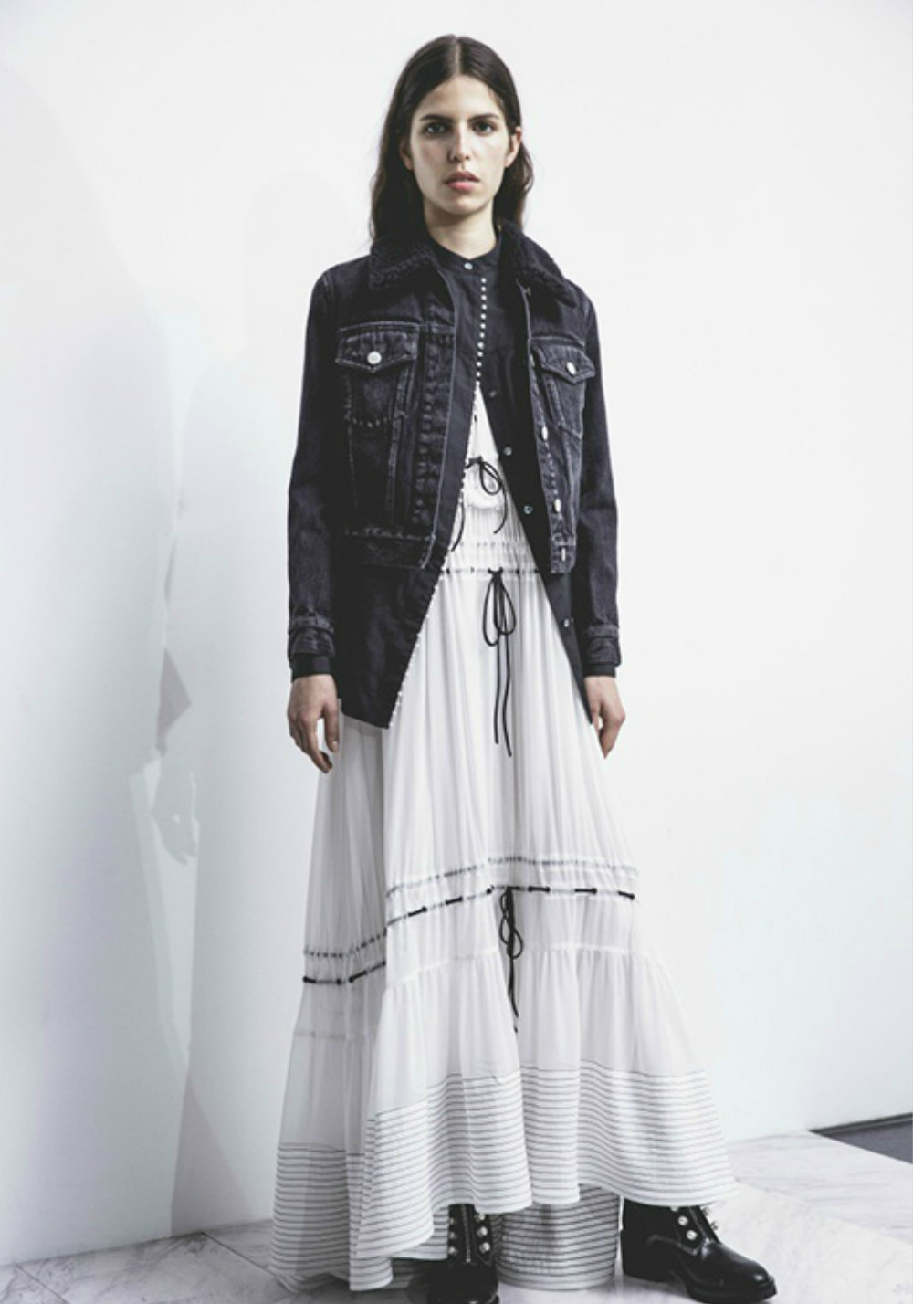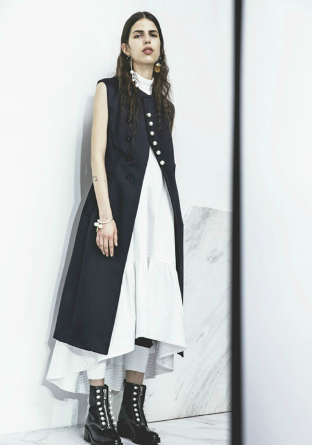 近日,3.1 Phillip Lim公布了它的2017早秋系列,依然是混搭的优雅运动风和简约的主色调黑、白。但Phillip Lim对细节的处理会活泼许多,诸如运用在本季衬衫、大衣、夹克上的细致褶皱、束腰剪裁、珍珠钮扣、荷叶边等设计。