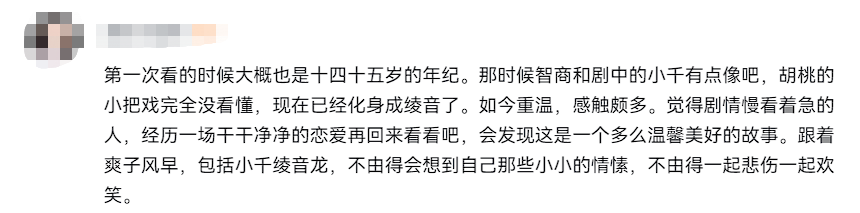 动画也顺了作者心意,用趣味演出维持作品轻松明快的氛围。在动画现在的评论区中,留言者或许相隔了十余年,无一不为包含真情的故事而感动,正值青春或是回忆青春,这份纯真的感情在众人心中始终美好。