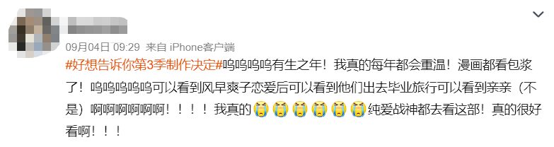 今年3月《好想告诉你》真人剧就在Netflix上线,不过既没有热度,口碑也一般,算是原著改编内容的失败。想要借第三季为自己青春画上句号的作品粉丝们来说,目前最好的方法显然是降低期待,放平心态,等待新动画的上线。