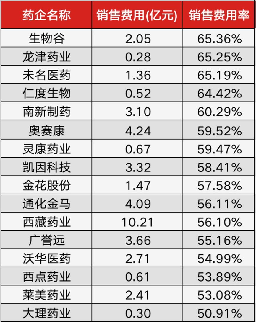 65.4%,这是排除处于商业化早期的创新药企情况后,药企最高的销售费用率。也就是说,有药企每收入100元,就要投入65元做营销。