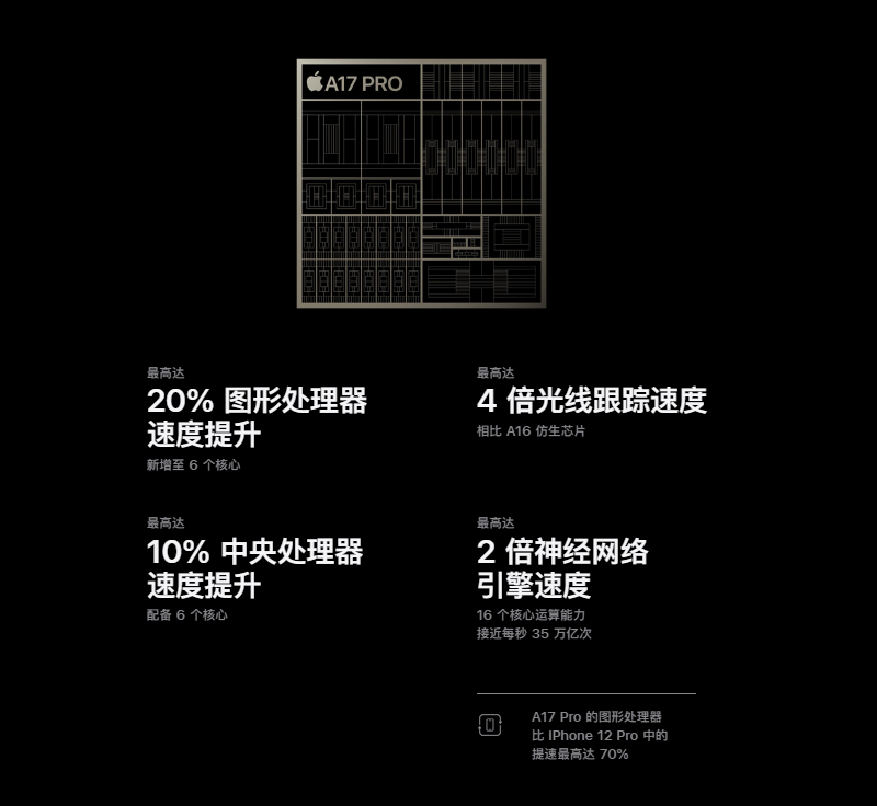 手机内部感知最强的就是苹果专门为iPhone 15 Pro研发的A17 Pro芯片,作为业界首款3nm芯片,A17 Pro的发布也许会引来手机游戏行业的技术进步和变革,不仅性能核心提升了10%,并且在手机上实现了最快的光追处理速度,苹果也因此宣布“iPhone是世界上最好的移动端游戏平台”。