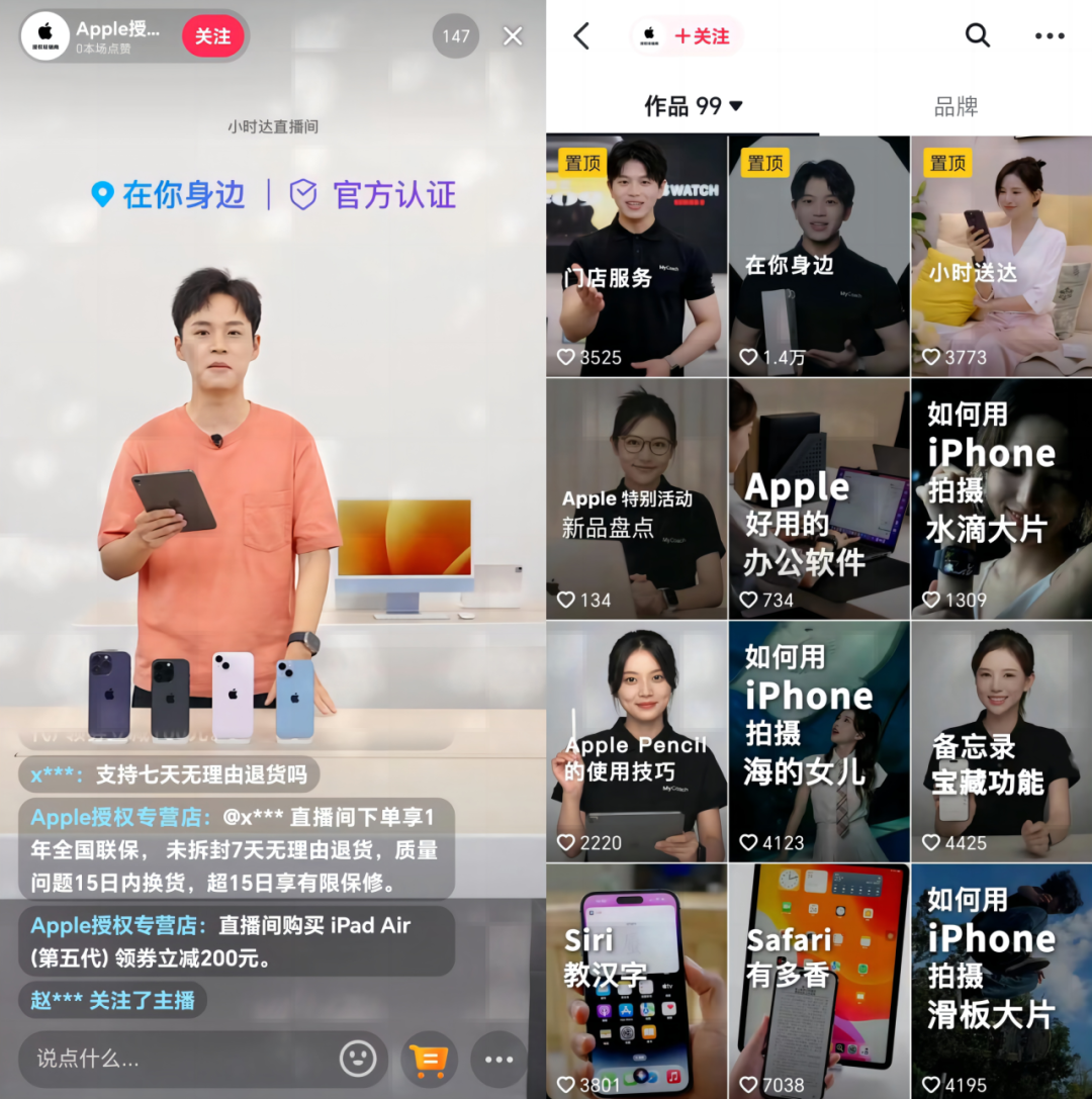 苹果也在这场内卷漩涡中,并且做了一些相应的安排,比如在中国市场,授权了抖音电商线上经销商的资格,抖音成为苹果的授权经销商,此前,苹果在中国只有京东、苏宁等8家授权经销商。不仅如此,苹果还开直播带货、开社交账号教大家用iPhone摄影,从去年开始,苹果的线上营销变得越来越接地气。