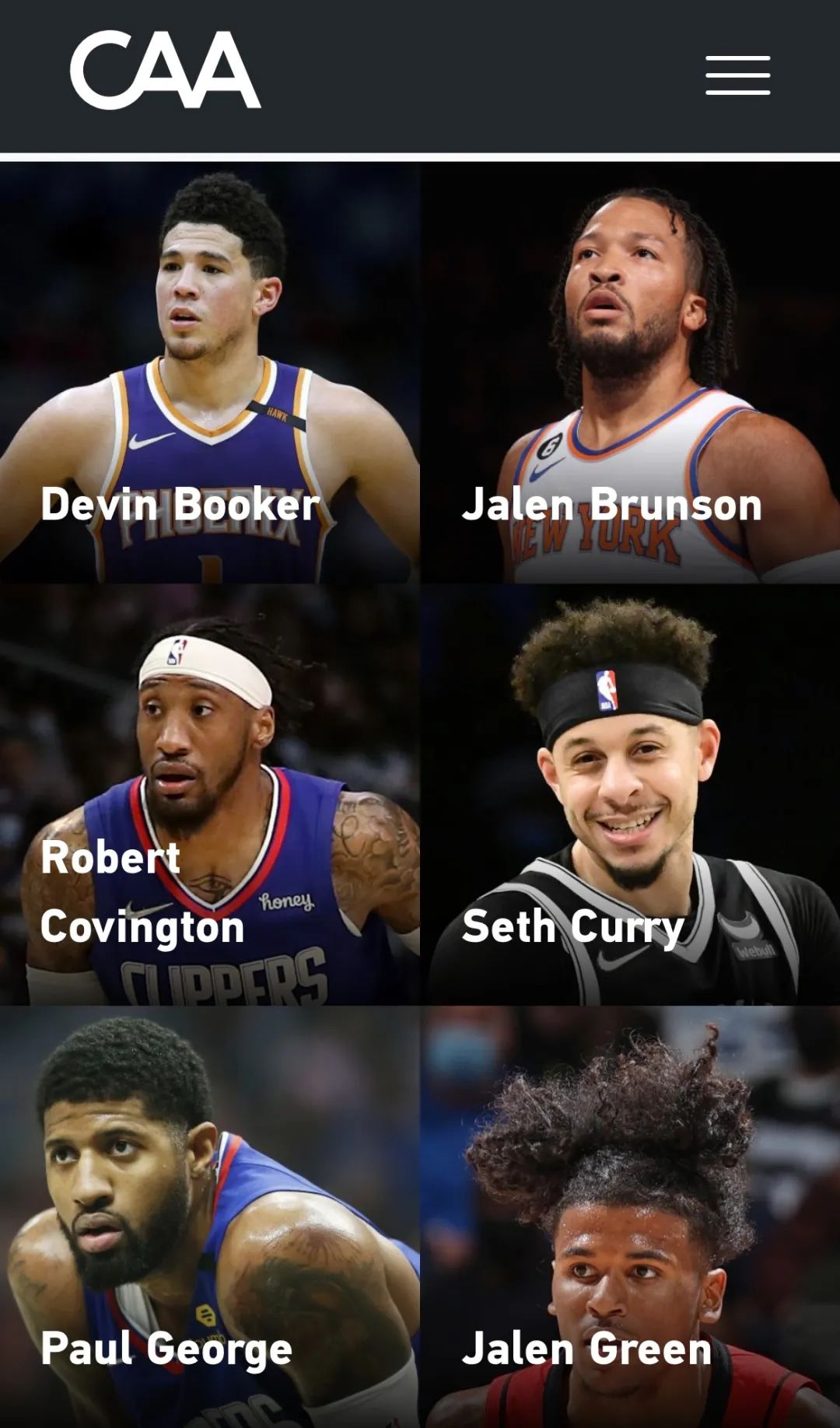 CAA部分NBA球员经纪业务 图源:CAA官网