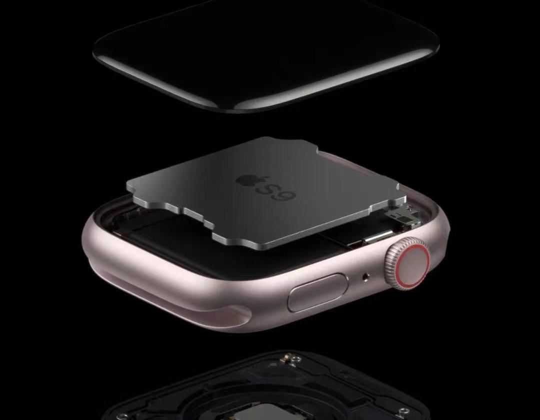 亮点之一是芯片,Series 9搭载了全新的双核S9 SiP芯片,是这次最大的更新。性能上S9 SiP CPU晶体管达到56亿,比上一代多60%。GPU速度提升30%。
