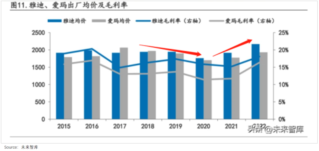 整体来看,过去2年间,雅迪爱玛的产品确实溢价明显,大吃差异化红利。