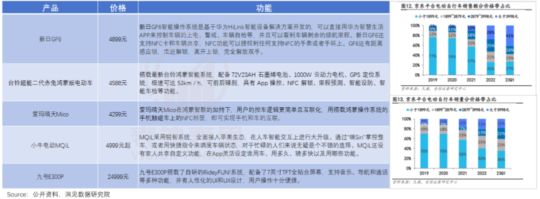 这在数据上也有验证,各大品牌带有智能化功能或长续航功能的车型,价格普遍在4000以上;2019-2022年,京东平台大于2879元的小电驴,销售额占比也由11%提升至53%。