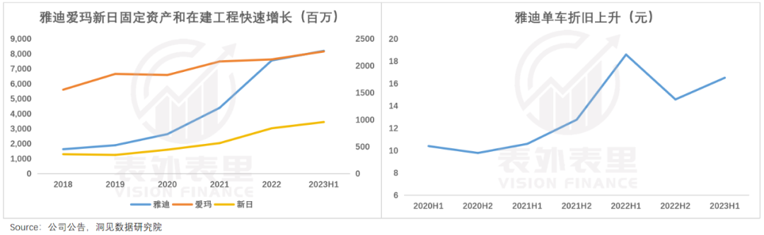 更棘手的是,这些堆起的工厂和产线,让各家的固定资产和在建工程大幅增长。投产后,会成为企业账上的折旧和摊销,没有足够的销量来进行摊薄,后果不堪设想。