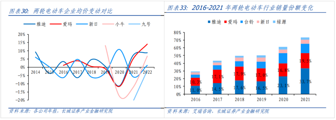 而爱玛、雅迪们不仅卖了货,还顺势吞掉了更多的市场份额,电车销量CR3由2016年的25%提升至2021年的65%。