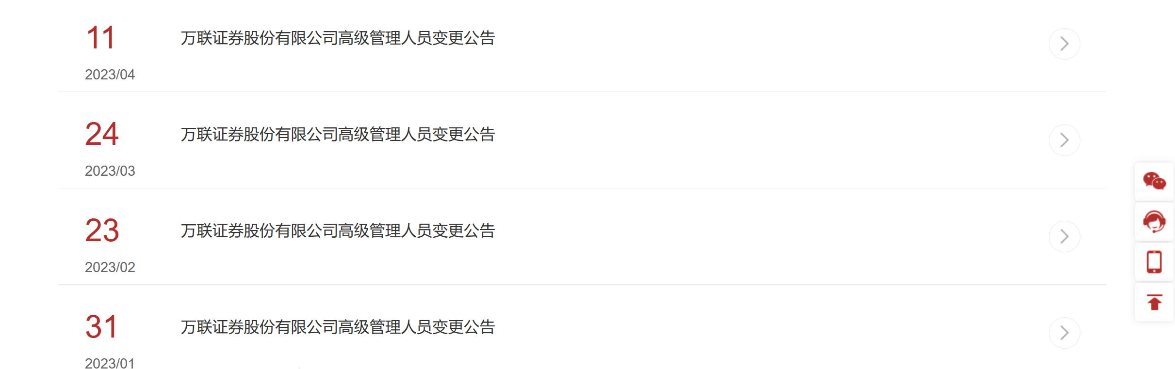 一直以来,万联证券在高管人事更迭上就异常频繁。仅今年1-4月份,万联证券就已连发布四份高管变动公告,涉及变动总裁、副总裁、总裁助理、常务副总裁、首席信息官共计五个职位。
