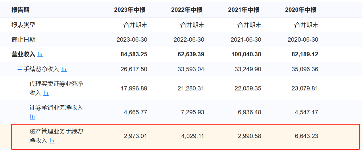 今年上半年,万联证券资产管理业务手续费及佣金净收入实现2973万元,同比下滑26.21%,收入为近四年中最低水平。