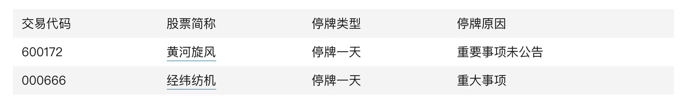 黄河旋风、经纬纺机今日停牌