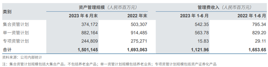 数据显示,2023上半年,中信证券资管业务管理费收入为11.22亿元,较上年末减少5.32亿元,降幅32.15%。