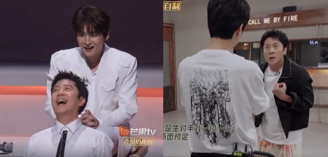 经过不算长的情绪酝酿,只见蔡国庆老师突然褪落黑外套,毅然走向全员白衬衫的《无数》部落,由于这炸裂的场面反转太突然,瞪大双眼的张远根本来不及做表情管理,舅舅王耀庆更是直接笑趴到俯身拍地……