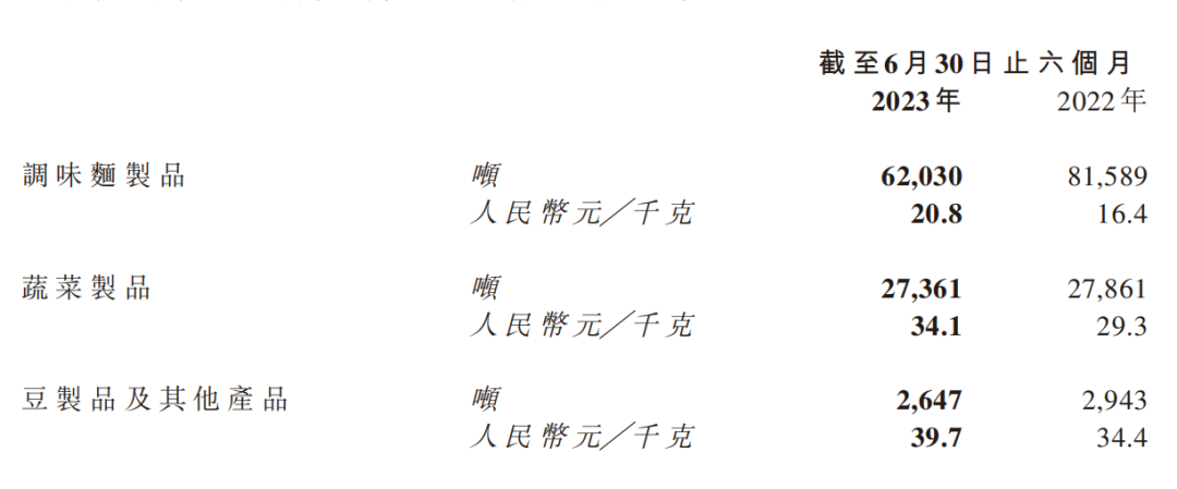 涨价是销量下滑的元凶。在2022年上半年,卫龙曾两次调价。2023年半年报显示,卫龙调味面制品单价从2022年上半年的16.4元/千克上涨至2023年上半年的20.8元/千克。